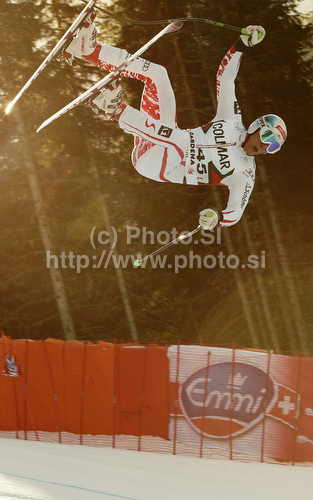 : Max Franz of Austria skiing in second training of Men downhill race of Audi FIS alpine skiing World Cup in Val Gardena, Italy. Second training of downhill race of Men Audi FIS Alpine skiing World Cup 2010-11, was held on Thursday, 16th of December 2010, on Saslong course in Val Gardena, Italy.