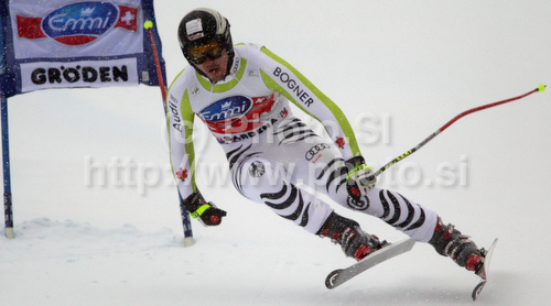 : Tobias Stechert of Germany skiing in Men Super-G race of Audi FIS alpine skiing World Cup in Val Gardena, Italy. Super-G race of Men Audi FIS Alpine skiing World Cup 2010-11, was held on Friday, 17th of December 2010, on Saslong course in Val Gardena, Italy.