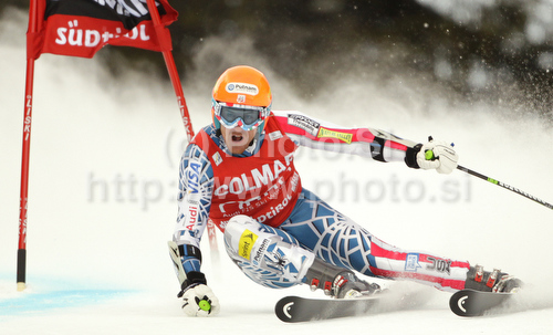 : Ted Ligety of USA skiing in first run of Men giant slalom race of Audi FIS alpine skiing World Cup in Alta Badia, Italy. Giant slalom race of Men Audi FIS Alpine skiing World Cup 2010-11, was held on Sunday, 20th of December 2010, on Gran Risa course in Alta Badia, Italy.
