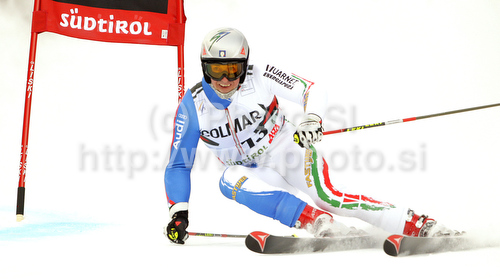 : Alexander Ploner of Italy skiing in first run of Men giant slalom race of Audi FIS alpine skiing World Cup in Alta Badia, Italy. Giant slalom race of Men Audi FIS Alpine skiing World Cup 2010-11, was held on Sunday, 20th of December 2010, on Gran Risa course in Alta Badia, Italy.