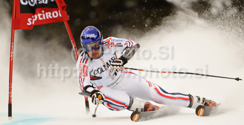 : Jean-Baptiste Grange of France skiing in first run of Men giant slalom race of Audi FIS alpine skiing World Cup in Alta Badia, Italy. Giant slalom race of Men Audi FIS Alpine skiing World Cup 2010-11, was held on Sunday, 20th of December 2010, on Gran Risa course in Alta Badia, Italy.
