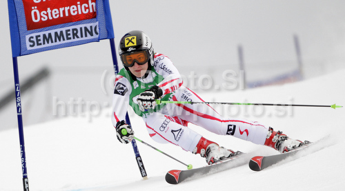 : Kathrin Zettel of Austria skiing in first run of Women giant slalom race of Audi FIS alpine skiing World Cup in Semmering, Austria. Giant slalom race of Women Audi FIS Alpine skiing World Cup 2010-11, was held on Tuesday, 28th of December 2010, in Semmering, Austria.