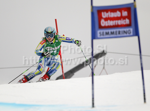 : Ana Drev of Slovenia skiing in first run of Women giant slalom race of Audi FIS alpine skiing World Cup in Semmering, Austria. Giant slalom race of Women Audi FIS Alpine skiing World Cup 2010-11, was held on Tuesday, 28th of December 2010, in Semmering, Austria.