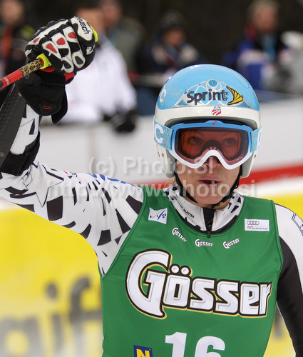: Fifth placed Julia Mancuso of USA reacts in finish of second run of Women giant slalom race of Audi FIS alpine skiing World Cup in Semmering, Austria. Giant slalom race of Women Audi FIS Alpine skiing World Cup 2010-11, was held on Tuesday, 28th of December 2010, in Semmering, Austria.