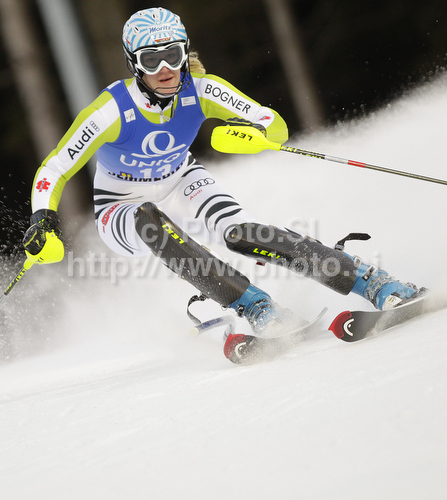 : Susanne Riesch of Germany skiing in first run of Women slalom race of Audi FIS alpine skiing World Cup in Semmering, Austria. Slalom race of Women Audi FIS Alpine skiing World Cup 2010-11, was held on Wednesday, 29th of December 2010, in Semmering, Austria.