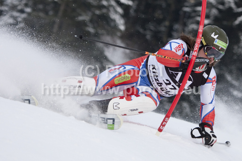 : Ondrej Bank (CZE) attacks a control gate while competing in the slalom race part of Audi FIS World Cup races in Kitzbuhel Austria.