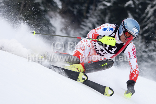 : Kalle Palander (FIN) attacks a control gate while competing in the slalom race part of Audi FIS World Cup races in Kitzbuhel Austria.