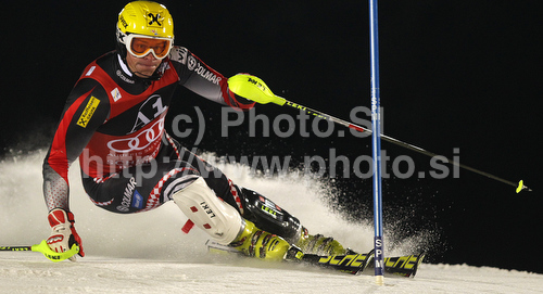: Ivica Kostelic of Croatia skiing in first run of Men slalom race of Audi FIS alpine skiing World Cup in Schladming, Austria. Traditional Night slalom race of Men Audi FIS Alpine skiing World Cup 2010-11, was held on Tuesday, 25th of January 2011, in Schladming, Austria.