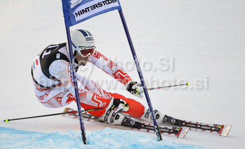 : Marcus Sandell of Finland skiing during first run of Men Giant slalom race of Audi FIS alpine skiing World Cup in Hinterstoder, Austria. Giant slalom race of Men Audi FIS Alpine skiing World Cup 2010-11, was held on Sunday, 6th of February 2011, in Hinterstoder, Austria.