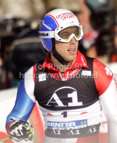 Hinterstoder ,Austria - 06.02.2011 : Third placed Carlo Janka of Switzerland reacts in finish of second run of Men Giant slalom race of Audi FIS alpine skiing World Cup in Hinterstoder, Austria. Giant slalom race of Men Audi FIS Alpine skiing World Cup 2010-11, was held on Sunday, 6th of February 2011, in Hinterstoder, Austria. Photo by: Primoz Jeroncic