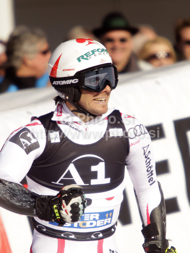 Hinterstoder ,Austria - 06.02.2011 : Winner Philipp Schoerghofer of Austria reacts in finish of second run of Men Giant slalom race of Audi FIS alpine skiing World Cup in Hinterstoder, Austria. Giant slalom race of Men Audi FIS Alpine skiing World Cup 2010-11, was held on Sunday, 6th of February 2011, in Hinterstoder, Austria. Photo by: Primoz Jeroncic