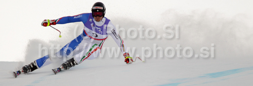 : Dominik Paris of Italy skiing in training run for Men downhill race of FIS alpine skiing World Championships in Garmisch-Partenkirchen, Germany. Training run for men downhill race of Men Super-G race of FIS alpine skiing World Championships, was held on Thursday, 10th of February 2011, in Garmisch-Partenkirchen, Germany.