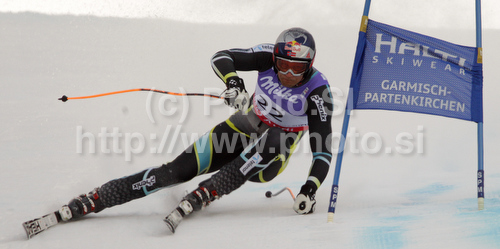 : Aksel Lund Svindal of Norway skiing in training run for Men downhill race of FIS alpine skiing World Championships in Garmisch-Partenkirchen, Germany. Training run for men downhill race of Men Super-G race of FIS alpine skiing World Championships, was held on Thursday, 10th of February 2011, in Garmisch-Partenkirchen, Germany.