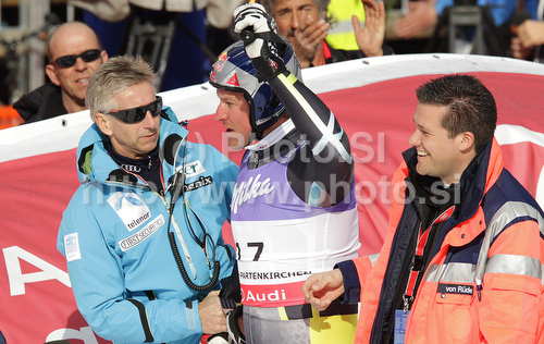 : Aksel Lund Svindal of Norway reacts in the finish of Mens Downhill race of FIS alpine skiing World Championships in Garmisch-Partenkirchen, Germany. Mens Downhill race of FIS alpine skiing World Championships, was held on Saturday, 12th of February 2011, in Garmisch-Partenkirchen, Germany.