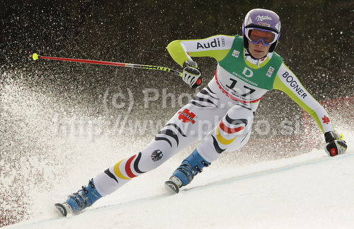: Third placed Maria Riesch of Germany skiing in women downhill race of FIS alpine skiing World Championships in Garmisch-Partenkirchen, Germany. Women downhill race of FIS alpine skiing World Championships, was held on Sunday, 13th of February 2011, in Garmisch-Partenkirchen, Germany.