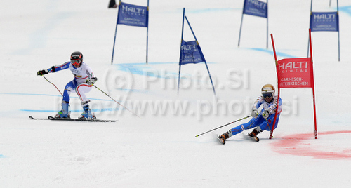 : Maria Pietilae-Holmer of Sweden and Johanna Schnarf of Italy skiing in team race of FIS alpine skiing World Championships in Garmisch-Partenkirchen, Germany. Team race of FIS alpine skiing World Championships, was held on Wednesday, 16th of February 2011, in Garmisch-Partenkirchen, Germany.
