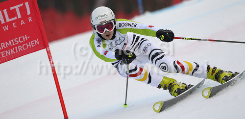 : Lena Duerr of Germany skiing in second run of Women giant slalom race of FIS alpine skiing World Championships in Garmisch-Partenkirchen, Germany. Women giant slalom race of FIS alpine skiing World Championships, was held on Thursday, 17th of February 2011, in Garmisch-Partenkirchen, Germany.