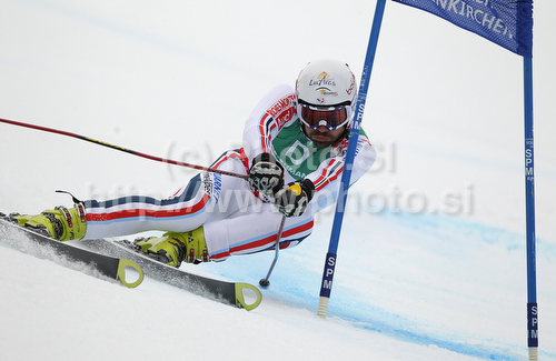 : Thomas Frey of France skiing in first run of Men giant slalom race of FIS alpine skiing World Championships in Garmisch-Partenkirchen, Germany. Men giant slalom race of FIS alpine skiing World Championships, was held on Friday, 18th of February 2011, in Garmisch-Partenkirchen, Germany.