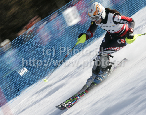 : Ana Jelusic of Croatia skiing in second run of Women slalom race of FIS alpine skiing World Championships in Garmisch-Partenkirchen, Germany. Women slalom race of FIS alpine skiing World Championships, was held on Saturday, 19th of February 2011, in Garmisch-Partenkirchen, Germany.