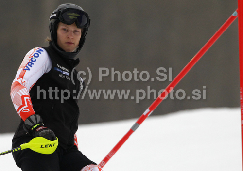 : Santeri Paloniemi of Finland during inspection of first run of Men slalom race of FIS alpine skiing World Championships in Garmisch-Partenkirchen, Germany. Men slalom race of FIS alpine skiing World Championships, was held on Sunday, 20th of February 2011, in Garmisch-Partenkirchen, Germany.