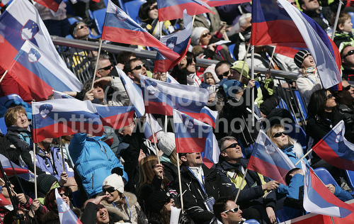 : Slovenian audience, Men giant slalom race of Audi FIS alpine skiing World Cup 2010-2011 in Kranjska Gora, Slovenia. Men giant slalom race of FIS alpine skiing World Championships, was held on Saturday, 5th of March 2011, in Kranjska Gora, Slovenia.