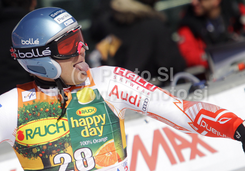 : Kalle Palander of Finland reacts in finish of second run of Men giant slalom race of Audi FIS alpine skiing World Cup 2010-2011 in Kranjska Gora, Slovenia. Men giant slalom race of FIS alpine skiing World Championships, was held on Saturday, 5th of March 2011, in Kranjska Gora, Slovenia.