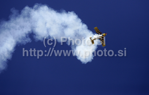 Kranjska Gora ,Slovenia - 05.03.2011 : Aerobatic flying over Podkoren in Kranjska Gora, Slovenia. Men giant slalom race of FIS alpine skiing World Championships, was held on Saturday, 5th of March 2011, in Kranjska Gora, Slovenia. Photo by: Leena Jeroncic