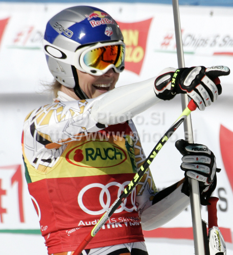 Tarvisio ,Italy - 06.03.2011 : Lindsey Vonn of USA reacts in finish of Women super-g race of Audi FIS alpine skiing World Cup 2010-2011 in Tarvisio, Italy. Women super-g race of Audi FIS alpine skiing World Cup 2010-2011, was held on Sunday, 6th of March 2011, in Tarvisio, Italy. Photo by: Tomaz Jeroncic
