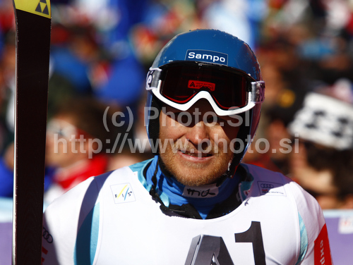 : Kalle Palander of Finland reacts in finish of second run of men giant slalom race of Audi FIS Alpine skiing World cup in Soelden, Austria. First race of men season 2011-2012 was held on Rettenbach glacier above Soelden, Austria, on Sunday, 23rd of October 2011.