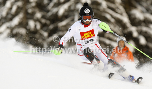 Alta Badia ,Italy - 19.12.2011 : Rainer Schoenfelder of Austria skiing in first run of men slalom race of Audi FIS Alpine skiing World cup in Alta Badia, Italy. Men slalom race of Audi FIS Alpine skiing World cup was held on Gran Risa course in Alta Badia, Italy on Monday, 19th of December 2011. Photo by: Primoz Jeroncic