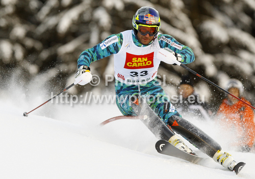 Alta Badia ,Italy - 19.12.2011 : Aksel Lund Svindal of Norway skiing in first run of men slalom race of Audi FIS Alpine skiing World cup in Alta Badia, Italy. Men slalom race of Audi FIS Alpine skiing World cup was held on Gran Risa course in Alta Badia, Italy on Monday, 19th of December 2011. Photo by: Primoz Jeroncic