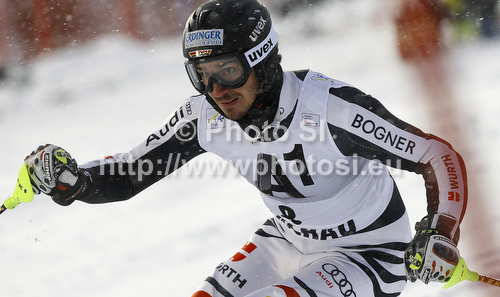 : Felix Neureuther of Germany skiing in first run of men slalom race of Audi FIS Alpine skiing World cup in Flachau, Austria. Men slalom race of Audi FIS Alpine skiing World cup, which replaced canceled Levi race, was held in Flachau, Austria on Wednesday, 21st of December 2011.
