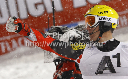 Flachau ,Austria - 21.12.2011 : Winner Ivica Kostelic of Croatia reacts in finish of second run of men slalom race of Audi FIS Alpine skiing World cup in Flachau, Austria. Men slalom race of Audi FIS Alpine skiing World cup, which replaced canceled Levi race, was held in Flachau, Austria on Wednesday, 21st of December 2011. Photo by: Primoz Jeroncic