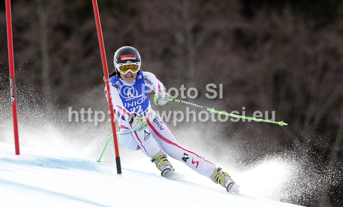 : Elisabeth Goergl of Austria skiing in the Women Downhill race of Audi FIS alpine skiing World Cup in Bad Kleinkirchheim, Austria. Women Downhill race of Women Audi FIS Alpine skiing World Cup 2011 / 2012, was held on Saturday, 7th of Januar 2012, on Kaernten _Franz Klammer course in Bad Kleinkirchheim, Austria.