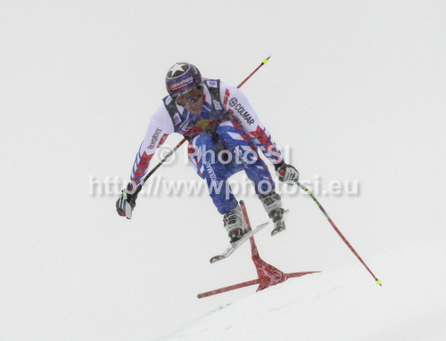 : Adrien Theaux of France skiing in the men Downhill race of Audi FIS alpine skiing World Cup in Kitzbuhel, Austria. men Downhill race of Men Audi FIS Alpine skiing World Cup 2011 / 2012, was held on Saturday, 21st of Januar 2012, on Strei course in Kitzbuhel, Austria.