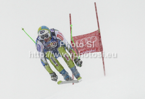 : Gasper Markic of Slovenia skiing in the men Downhill race of Audi FIS alpine skiing World Cup in Kitzbuhel, Austria. men Downhill race of Men Audi FIS Alpine skiing World Cup 2011 / 2012, was held on Saturday, 21st of Januar 2012, on Strei course in Kitzbuhel, Austria.
