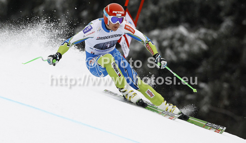 : Andrej Sporn of Slovenia skiing in men downhill race of Audi FIS Alpine skiing World cup in Garmisch-Partenkirchen, Germany. Men downhill race of Audi FIS Alpine skiing World cup, was held in Garmisch-Partenkirchen, Germany, on Saturday, 28th of January 2012.