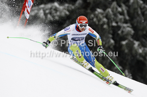 : Andrej Krizaj of Slovenia skiing in men downhill race of Audi FIS Alpine skiing World cup in Garmisch-Partenkirchen, Germany. Men downhill race of Audi FIS Alpine skiing World cup, was held in Garmisch-Partenkirchen, Germany, on Saturday, 28th of January 2012.