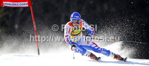 : Jean-Baptiste Grange of France skiing in first run of men giant slalom race of Audi FIS Alpine skiing World cup in Kranjska Gora, Slovenia. Men slalom race of Audi FIS Alpine skiing World cup was held in Kranjska Gora, Slovenia, on Saturday, 10th of March 2012.
