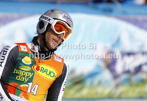 : Fritz Dopfer of Germany reacts in finish of second run of men giant slalom race of Audi FIS Alpine skiing World cup in Kranjska Gora, Slovenia. Men slalom race of Audi FIS Alpine skiing World cup was held in Kranjska Gora, Slovenia, on Saturday, 10th of March 2012.