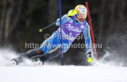 : Andre Myhrer of Sweden skiing in first run of men slalom race of Audi FIS Alpine skiing World cup in Kranjska Gora, Slovenia. Men slalom race of Audi FIS Alpine skiing World cup was held in Kranjska Gora, Slovenia, on Sunday, 11th of March 2012.