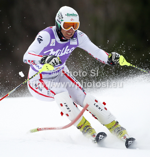Kranjska Gora ,Slovenia - 11.03.2012 : Manfred Pranger of Austria skiing in first run of men slalom race of Audi FIS Alpine skiing World cup in Kranjska Gora, Slovenia. Men slalom race of Audi FIS Alpine skiing World cup was held in Kranjska Gora, Slovenia, on Sunday, 11th of March 2012. Photo by: Primoz Jeroncic