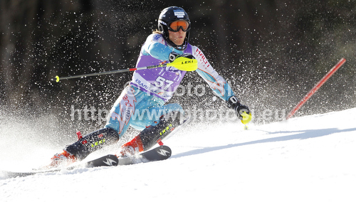 : Santeri Paloniemi of Finland skiing in first run of men slalom race of Audi FIS Alpine skiing World cup in Kranjska Gora, Slovenia. Men slalom race of Audi FIS Alpine skiing World cup was held in Kranjska Gora, Slovenia, on Sunday, 11th of March 2012.