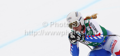 : Aurelie Revillet of France skiing in first training for women downhill race of Audi FIS Alpine skiing World cup finals in Schladming, Austria. Training for women downhill race of Audi FIS Alpine skiing World cup finals was held in Schladming, Austria, on Tuesday, 13th of March 2012.