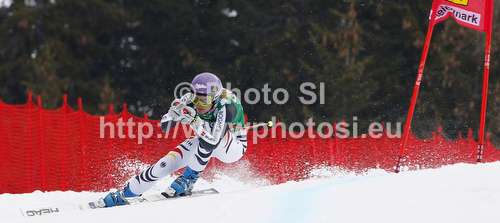 : Maria Hoefl-Riesch of Germany skiing in first training for women downhill race of Audi FIS Alpine skiing World cup finals in Schladming, Austria. Training for women downhill race of Audi FIS Alpine skiing World cup finals was held in Schladming, Austria, on Tuesday, 13th of March 2012.