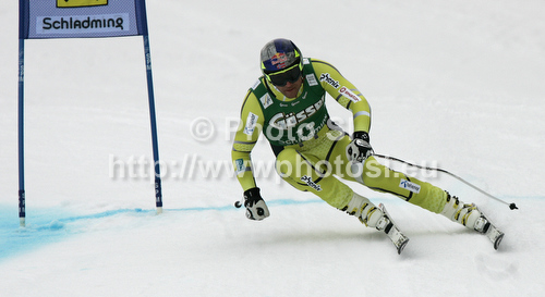 : Aksel Lund Svindal of Norway skiing in first training for men downhill race of Audi FIS Alpine skiing World cup finals in Schladming, Austria. Training for men downhill race of Audi FIS Alpine skiing World cup finals was held in Schladming, Austria, on Tuesday, 13th of March 2012.