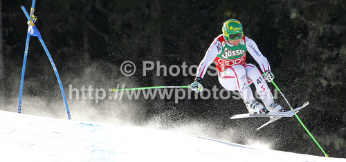 : Overall downhill World cup winner Klaus Kroell of Austria skiing in men downhill race of Audi FIS Alpine skiing World cup finals in Schladming, Austria. Men downhill race of Audi FIS Alpine skiing World cup finals was held in Schladming, Austria, on Wednesday, 14th of March 2012.