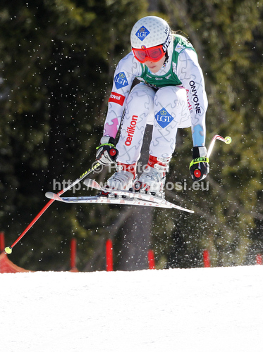: Fourth placed and overall downhill World cup second placed Tina Weirather of Liechtenstein skiing in women downhill race of Audi FIS Alpine skiing World cup finals in Schladming, Austria. Women downhill race of Audi FIS Alpine skiing World cup finals was held in Schladming, Austria, on Wednesday, 14th of March 2012.