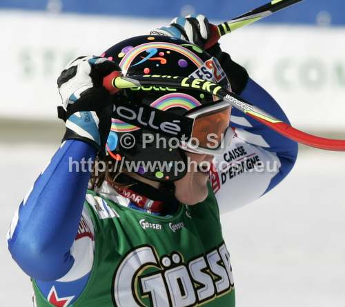 : reacts in finish of women downhill race of Audi FIS Alpine skiing World cup finals in Schladming, Austria. Women downhill race of Audi FIS Alpine skiing World cup finals was held in Schladming, Austria, on Wednesday, 14th of March 2012.