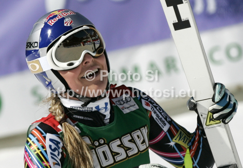 : reacts in finish of women downhill race of Audi FIS Alpine skiing World cup finals in Schladming, Austria. Women downhill race of Audi FIS Alpine skiing World cup finals was held in Schladming, Austria, on Wednesday, 14th of March 2012.